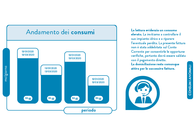 Informazioni sui consumi fatturati e storico dei consumi.